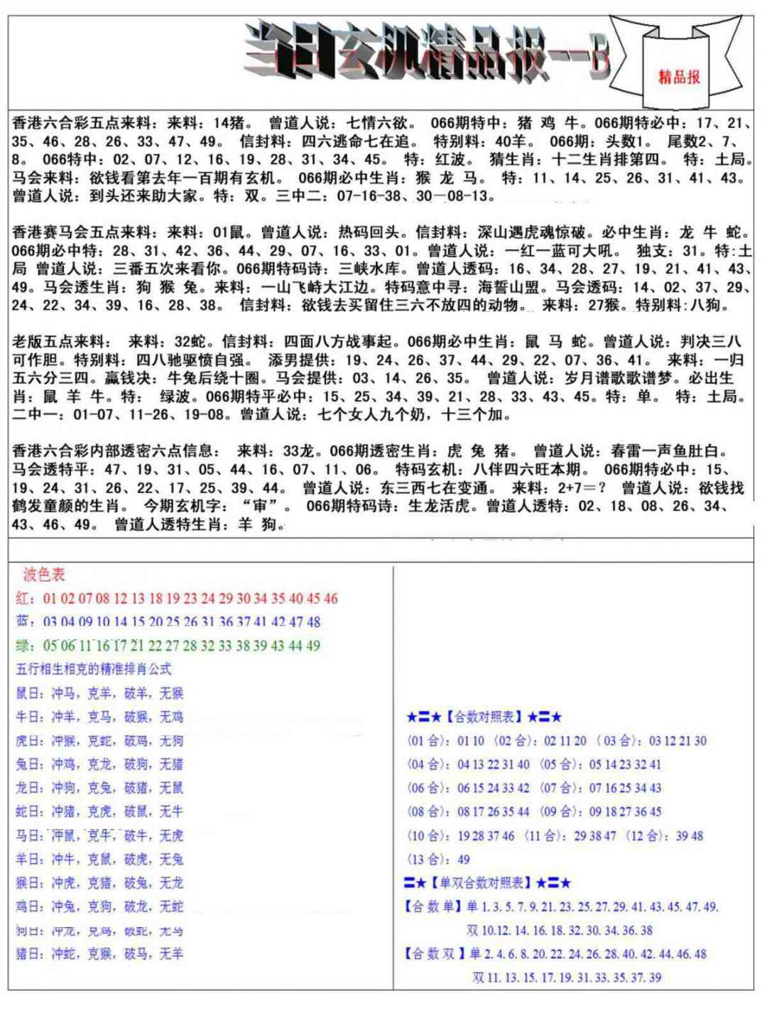 066期当日玄机精品报B[图]