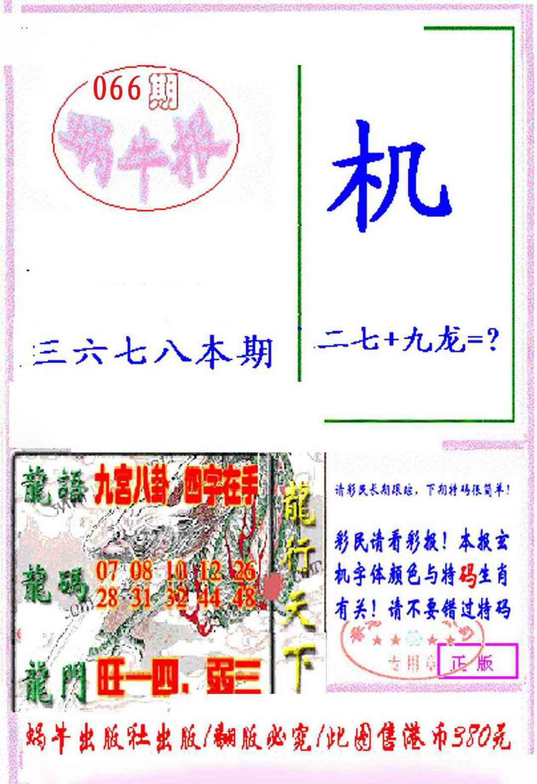 上一篇:066期九龙特新刊[图]