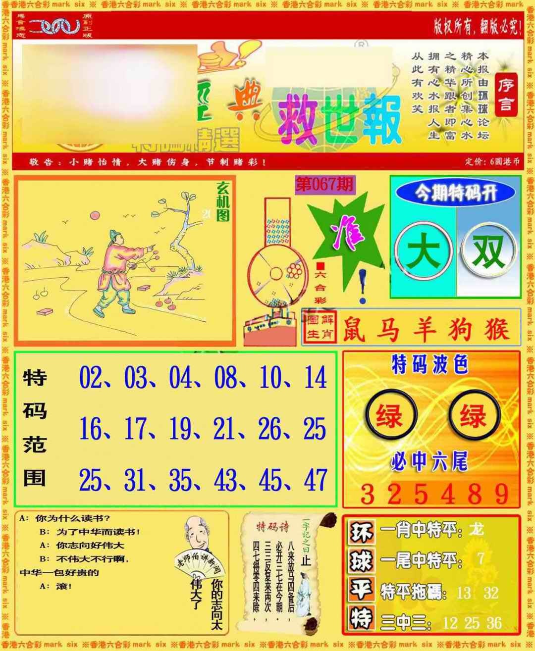 067期环球特码救世报[图]