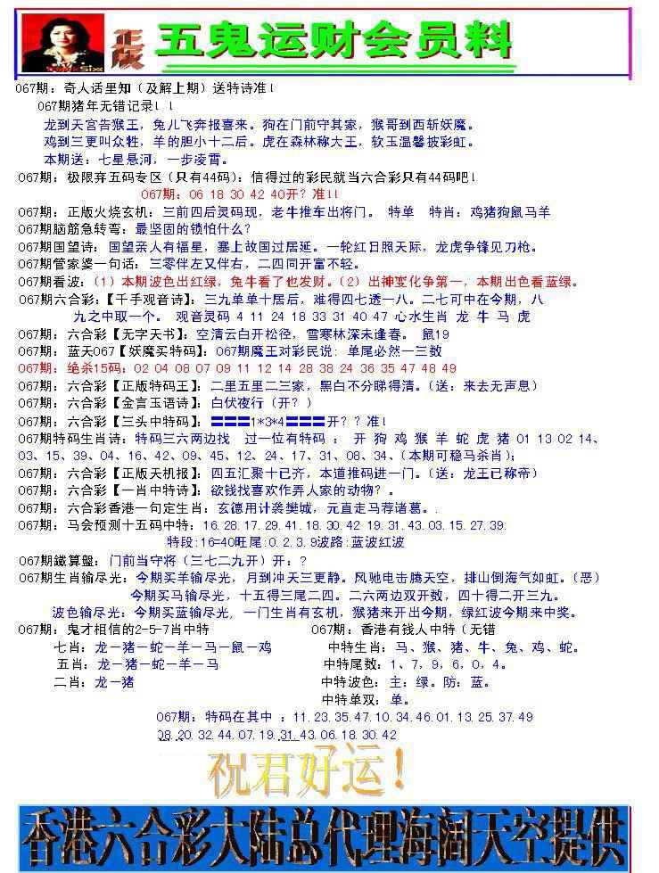 067期五鬼运财会员料[图]