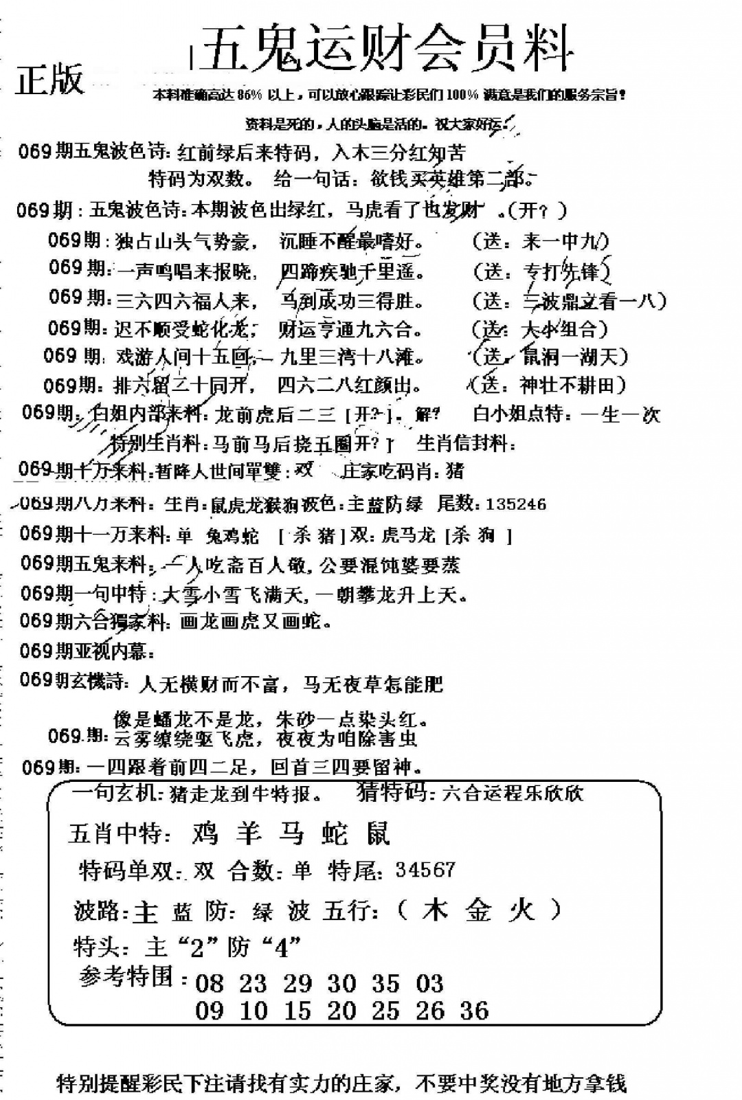 069期五鬼运财会员料[图]
