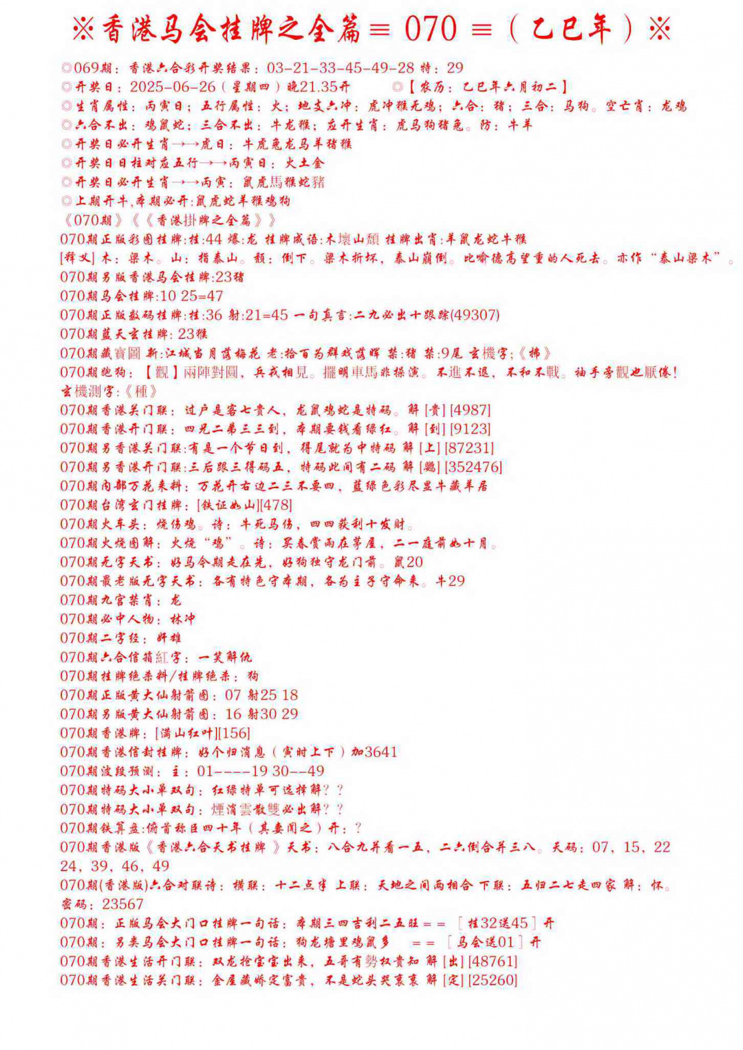 070期手写马会挂牌[图]