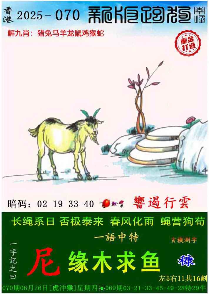 070期新版跑狗图(内幕版)[图]