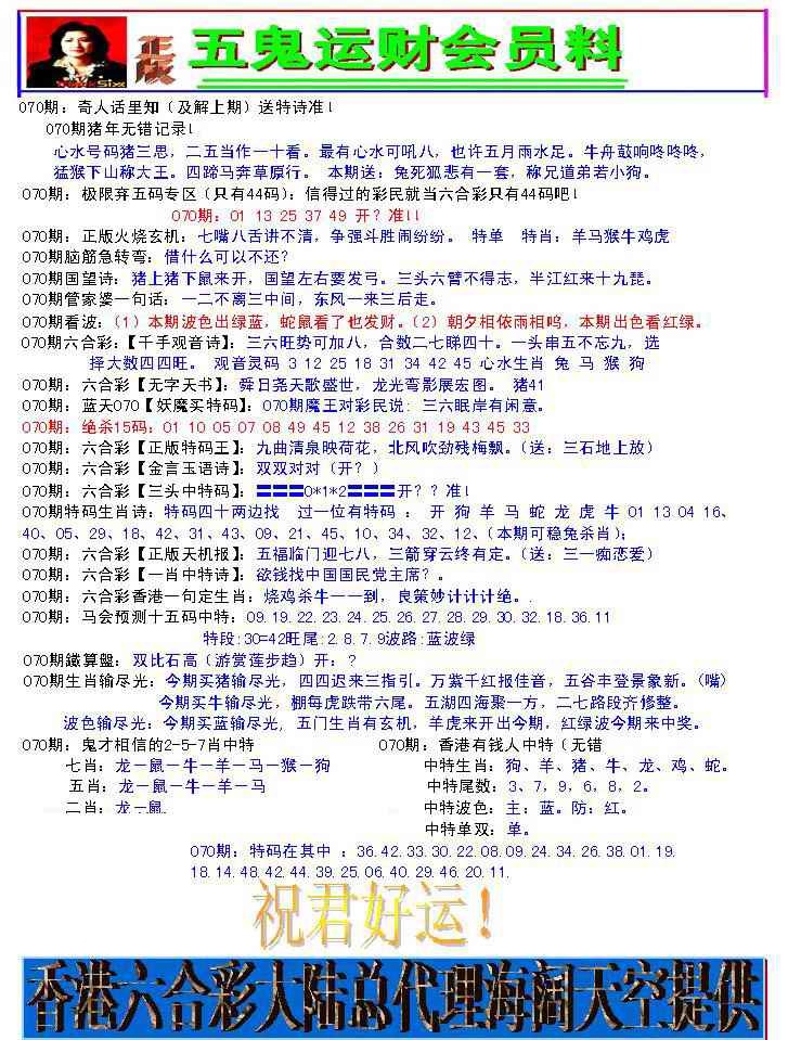 070期五鬼运财会员料[图]