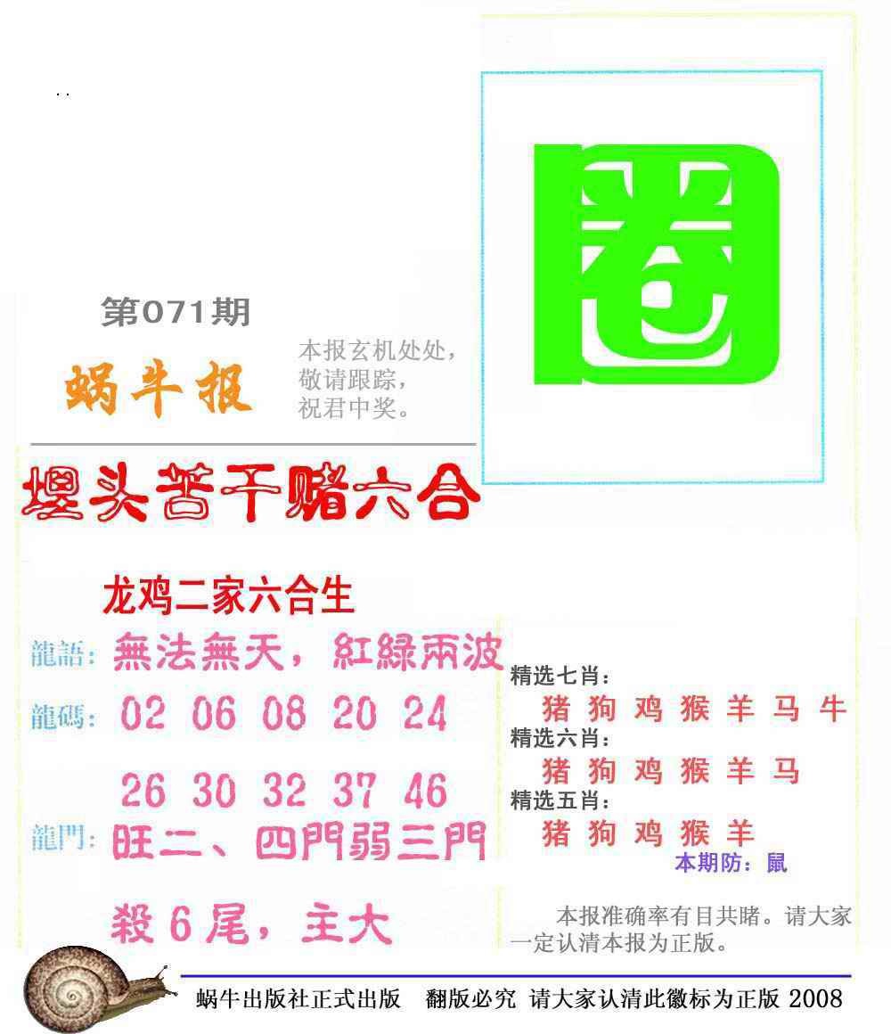 071期蜗牛彩报(正版)[图]