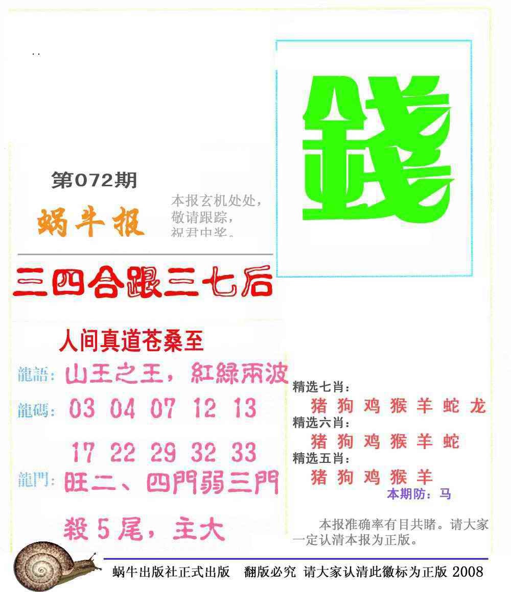 072期蜗牛彩报(正版)[图]