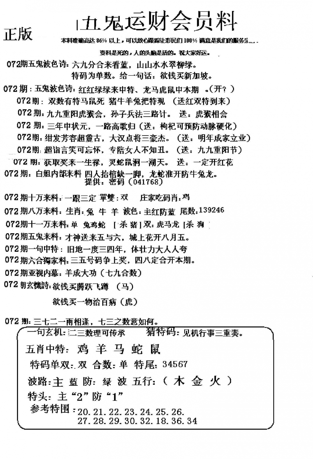072期五鬼运财会员料[图]