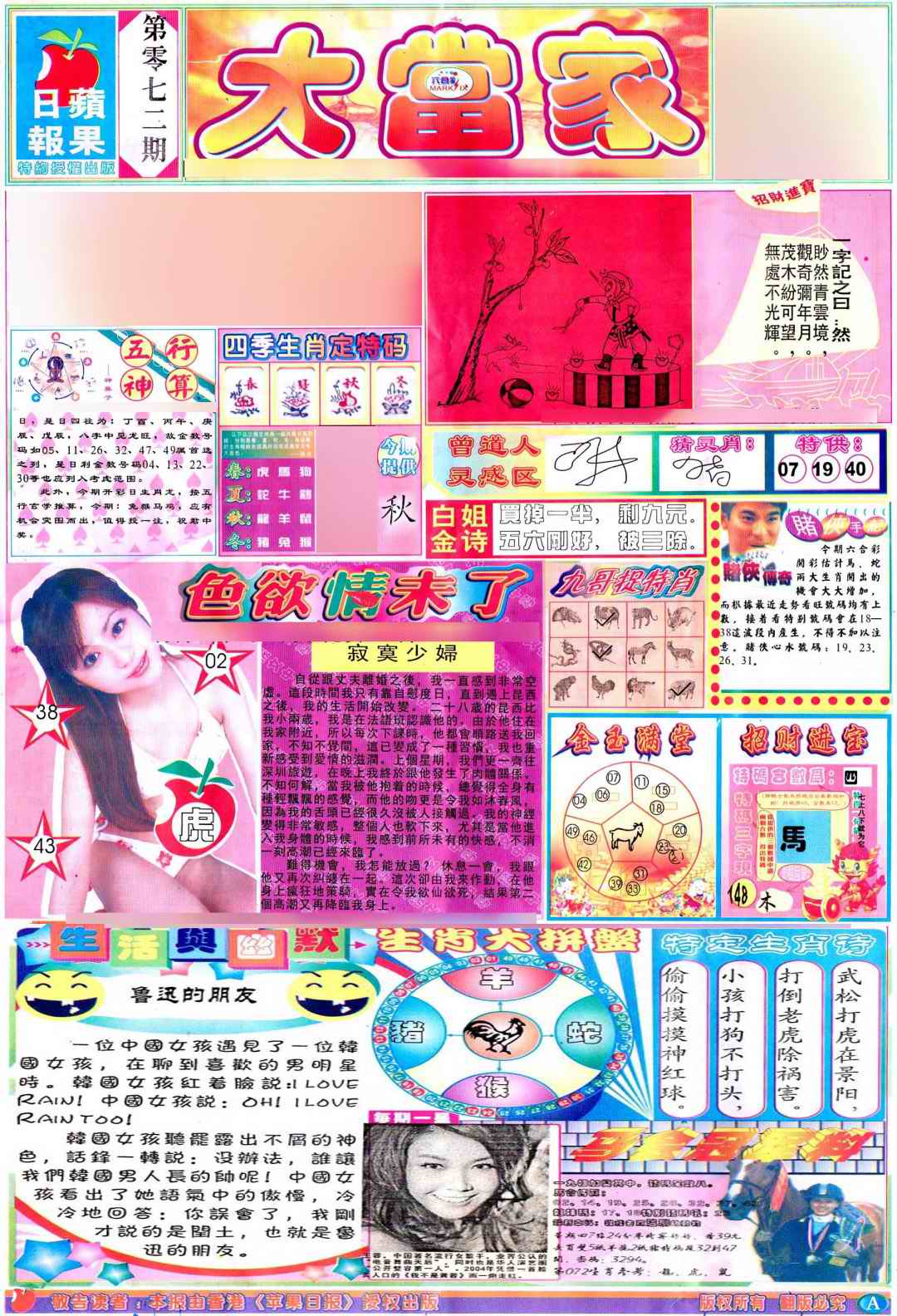 072期彩卷后庄A(保证香港版)[图]