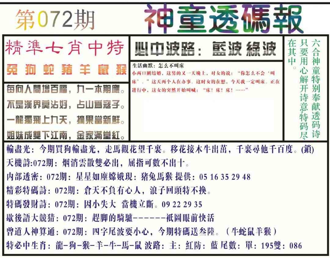 072期神童透码报(正版)[图]