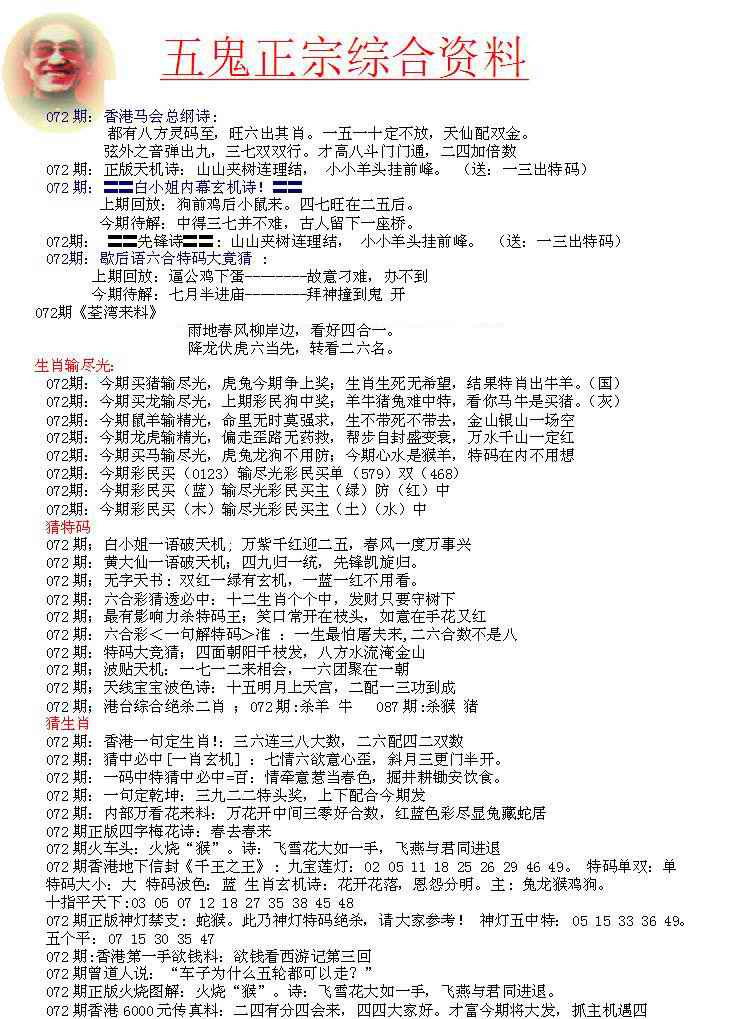 072期五鬼正宗会员综合资料A[图]