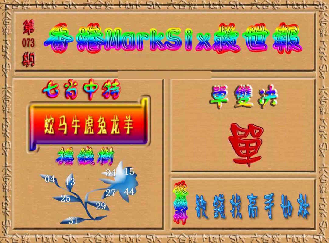 073期香港MarkSix救世报[图]