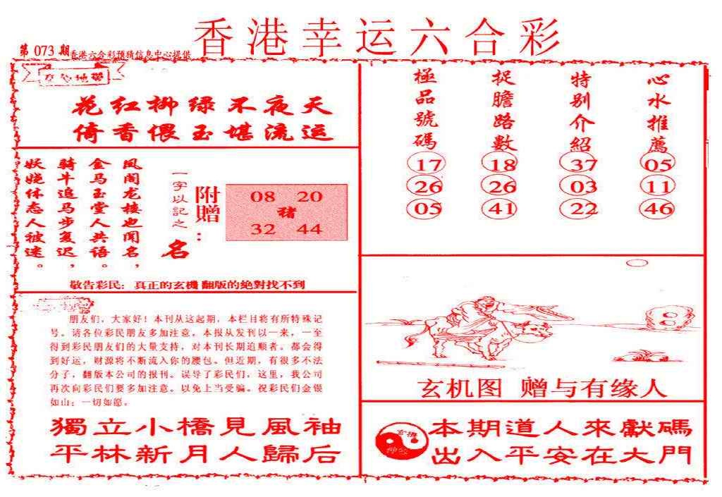 073期幸运六合彩(信封)[图]