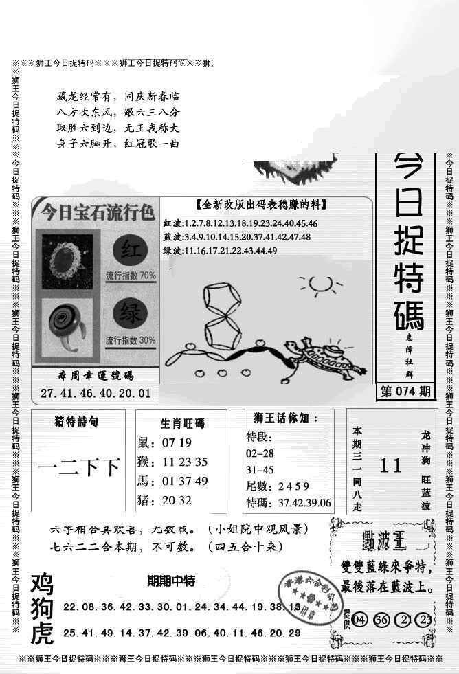 074期狮王今日抓特码[图]