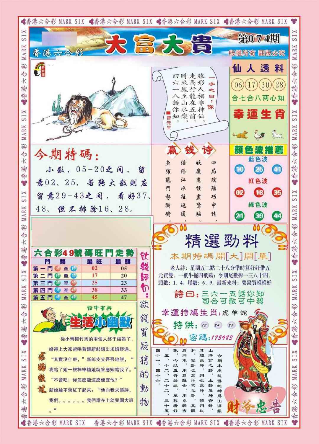 074期香港大富大贵(新图)[图]