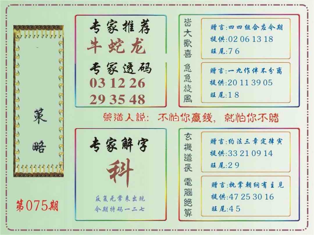 075期马经策略[图]