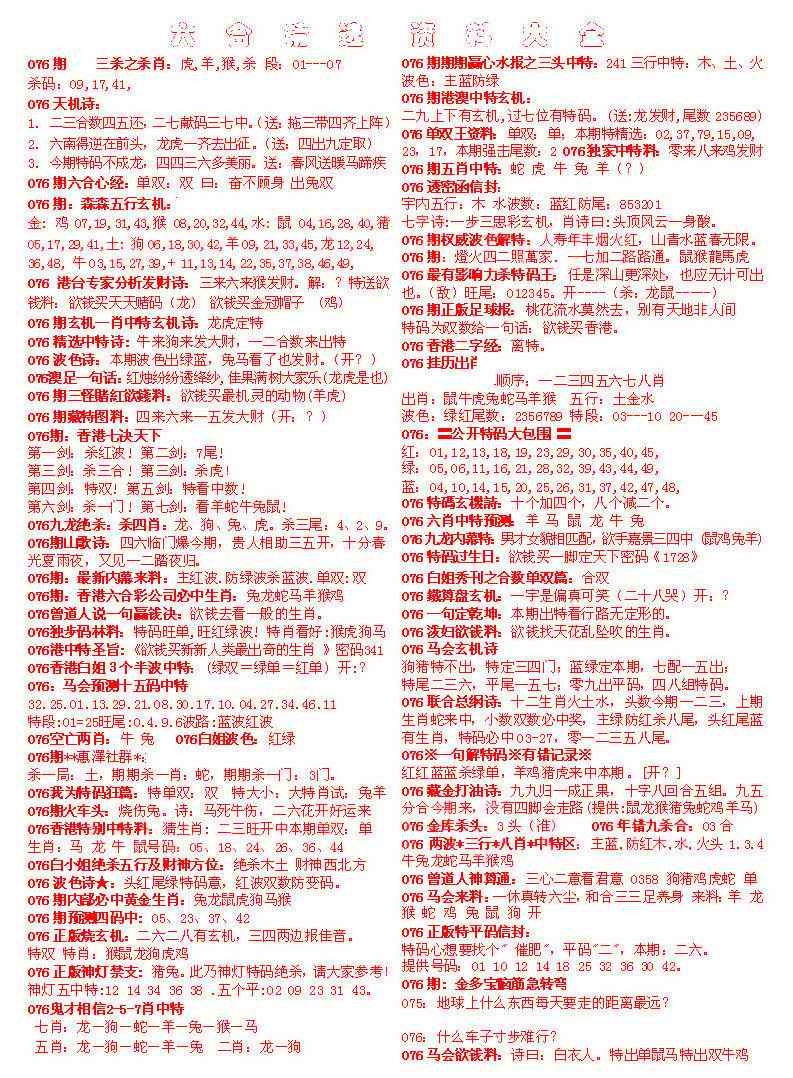 076期六合精选资料大全[图]