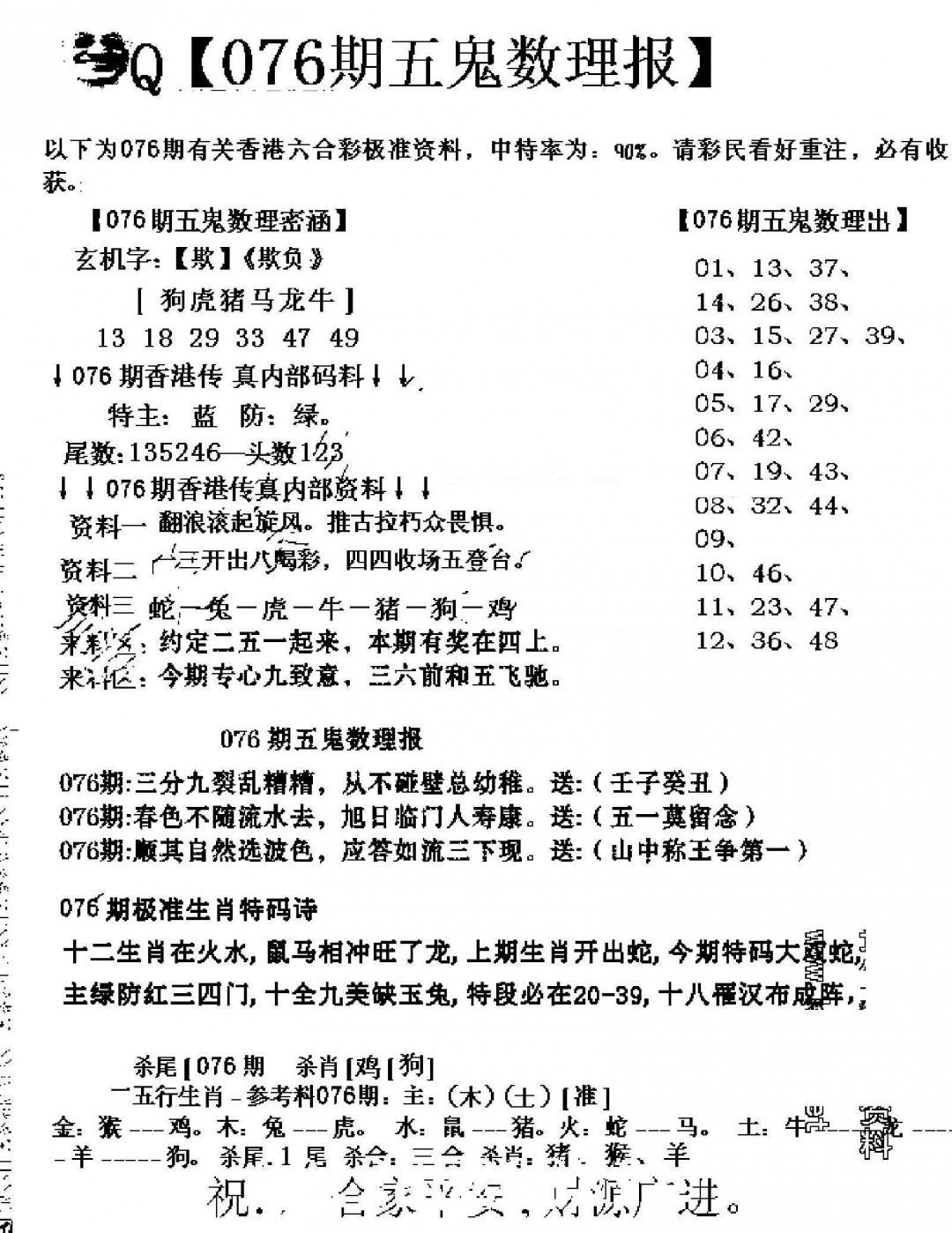 076期五鬼数理报[图]