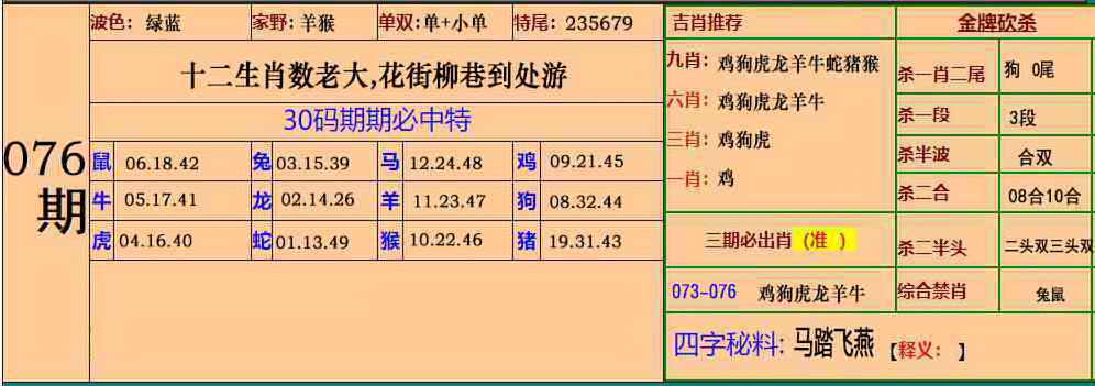 076期小鱼儿30码期期中[图]