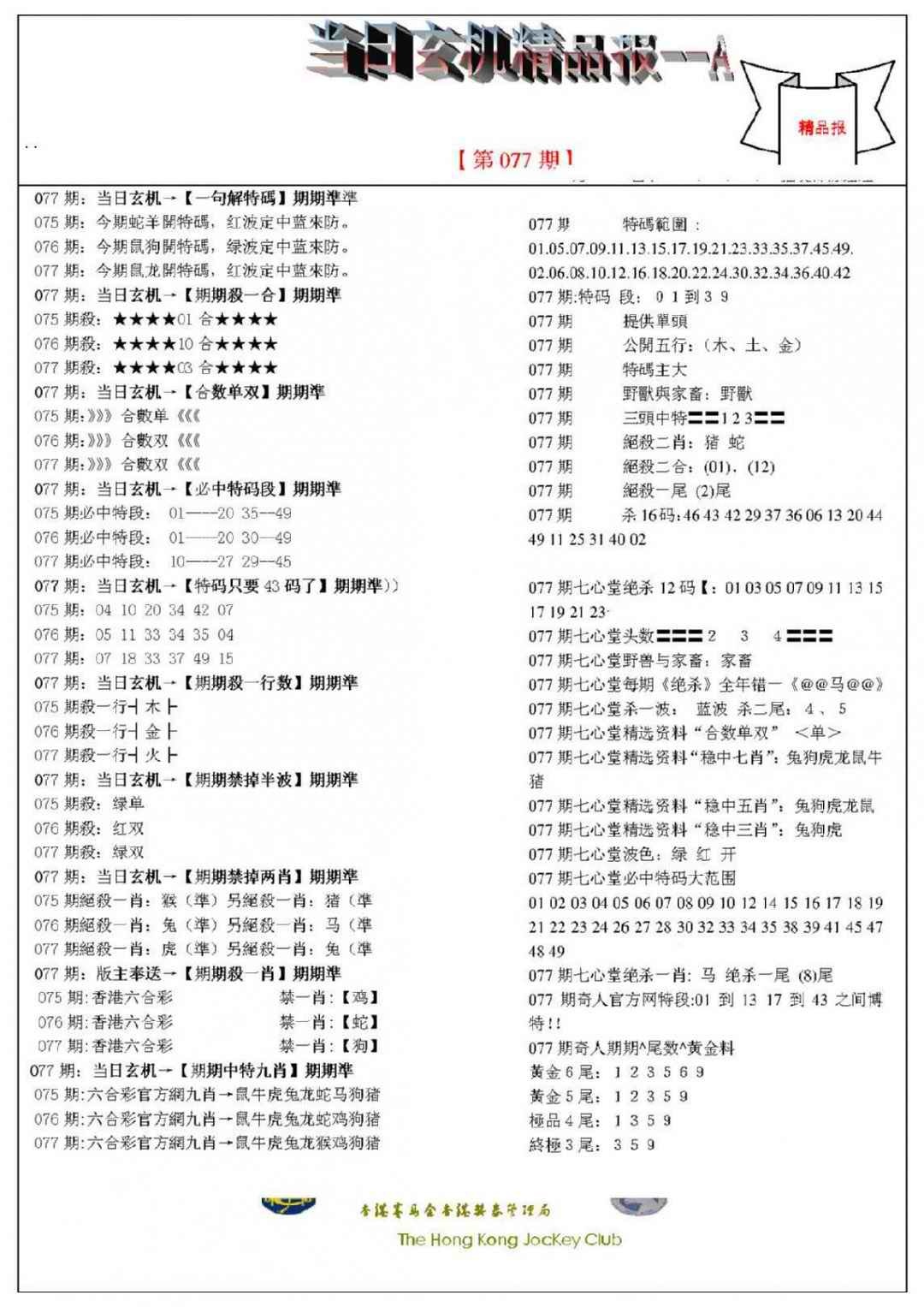 077期当日玄机精品报A[图]
