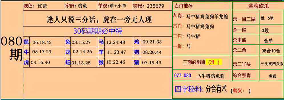 080期小鱼儿30码期期中[图]