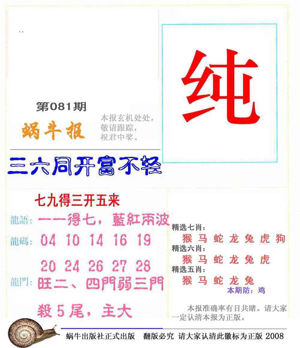 081期蜗牛彩报(正版)[图]
