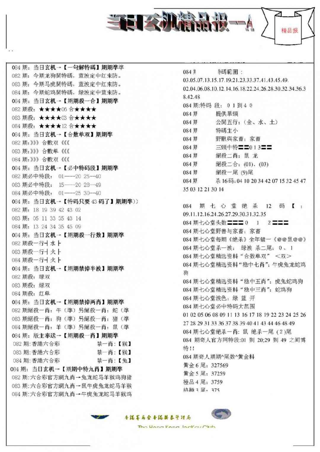 084期当日玄机精品报A[图]
