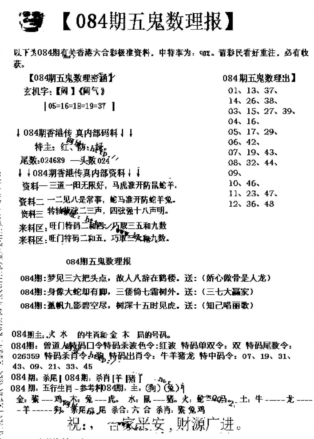 084期五鬼数理报[图]