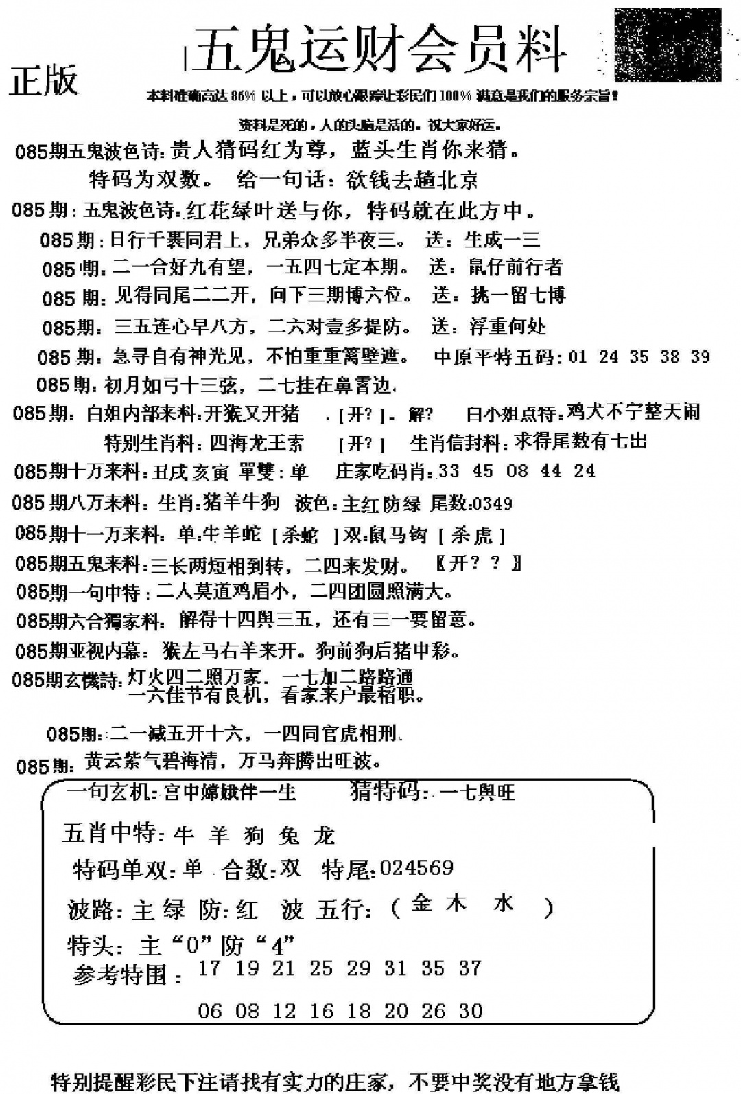 085期五鬼运财会员料[图]