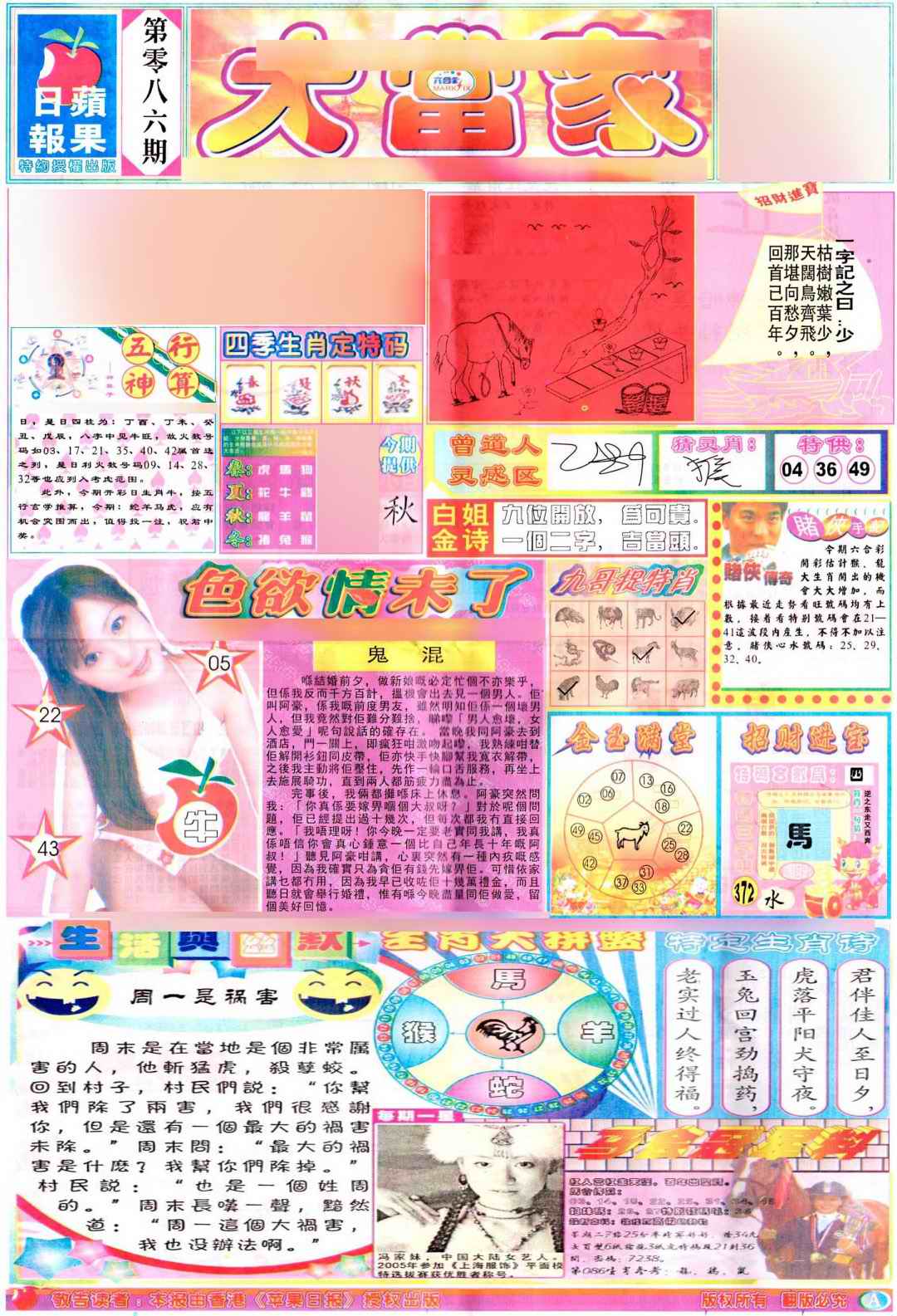 086期彩卷后庄A(保证香港版)[图]