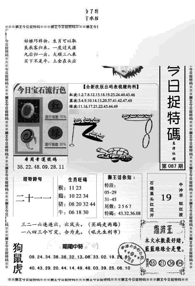 087期狮王今日抓特码[图]