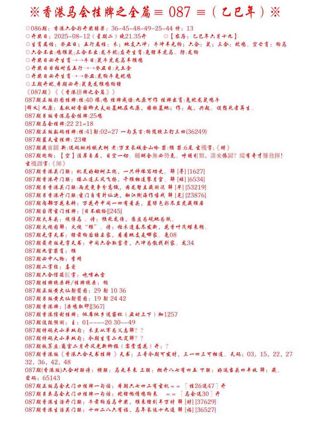 087期手写马会挂牌[图]