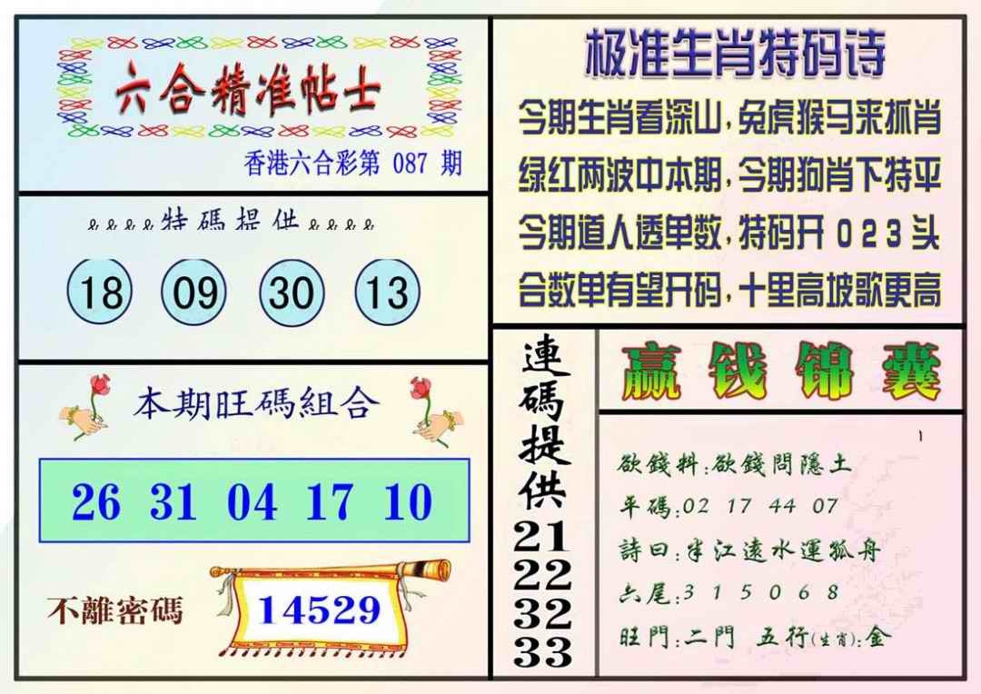 087期精准贴士[图]