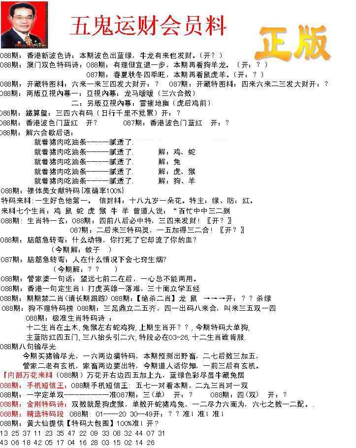088期正版五鬼运财会员料[图]