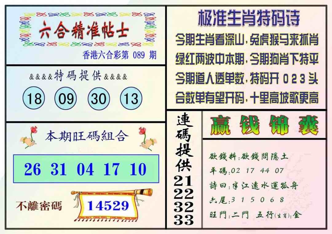 089期精准贴士[图]