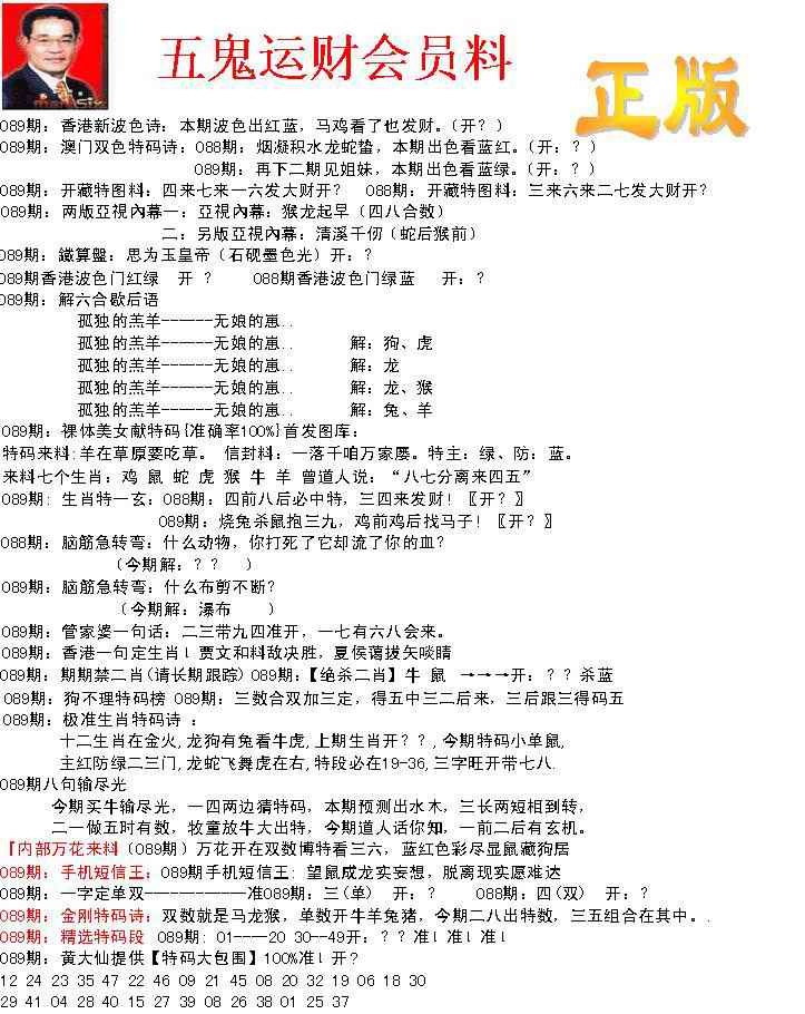 089期正版五鬼运财会员料[图]
