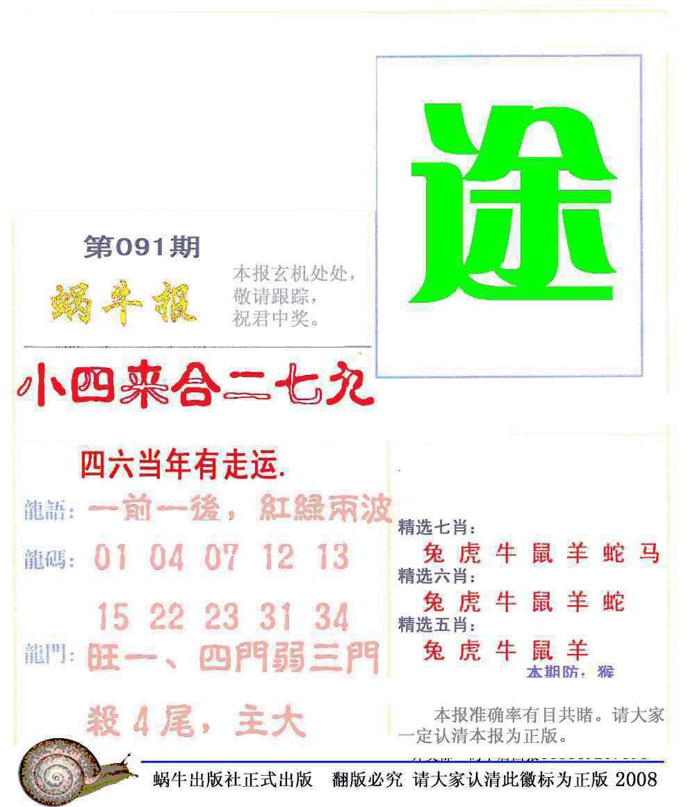 091期蜗牛彩报(正版)[图]