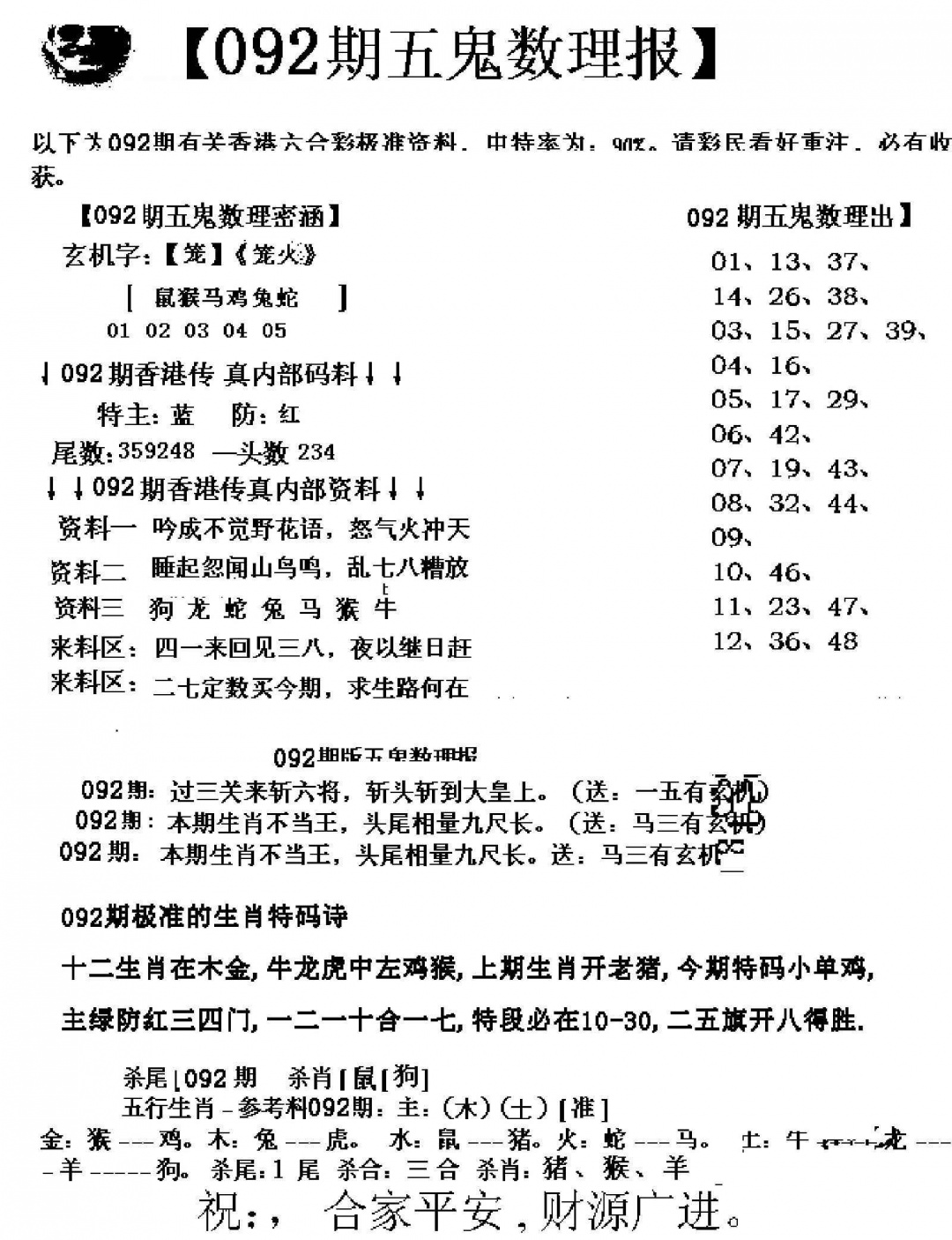 092期五鬼数理报[图]