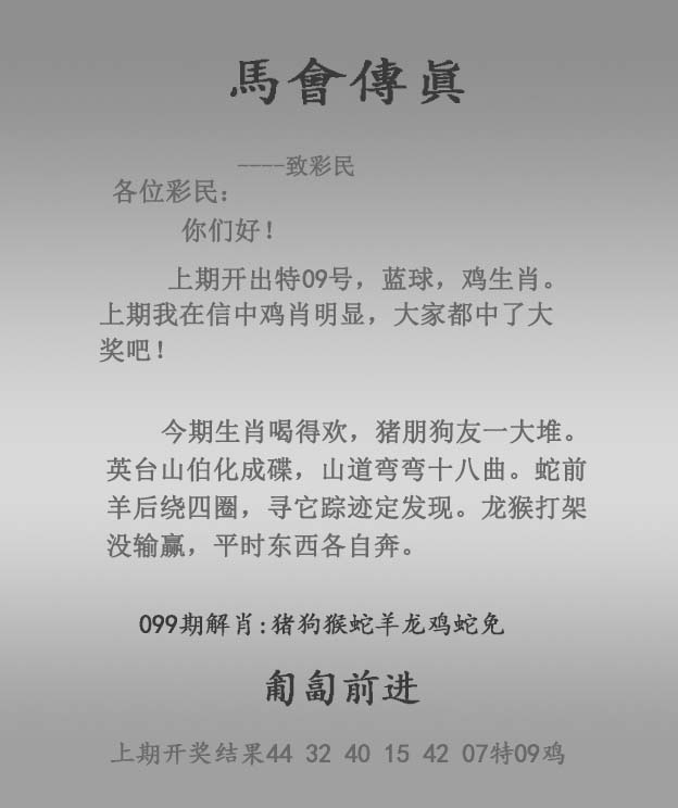 上一篇:099期马经内幕报[图]
