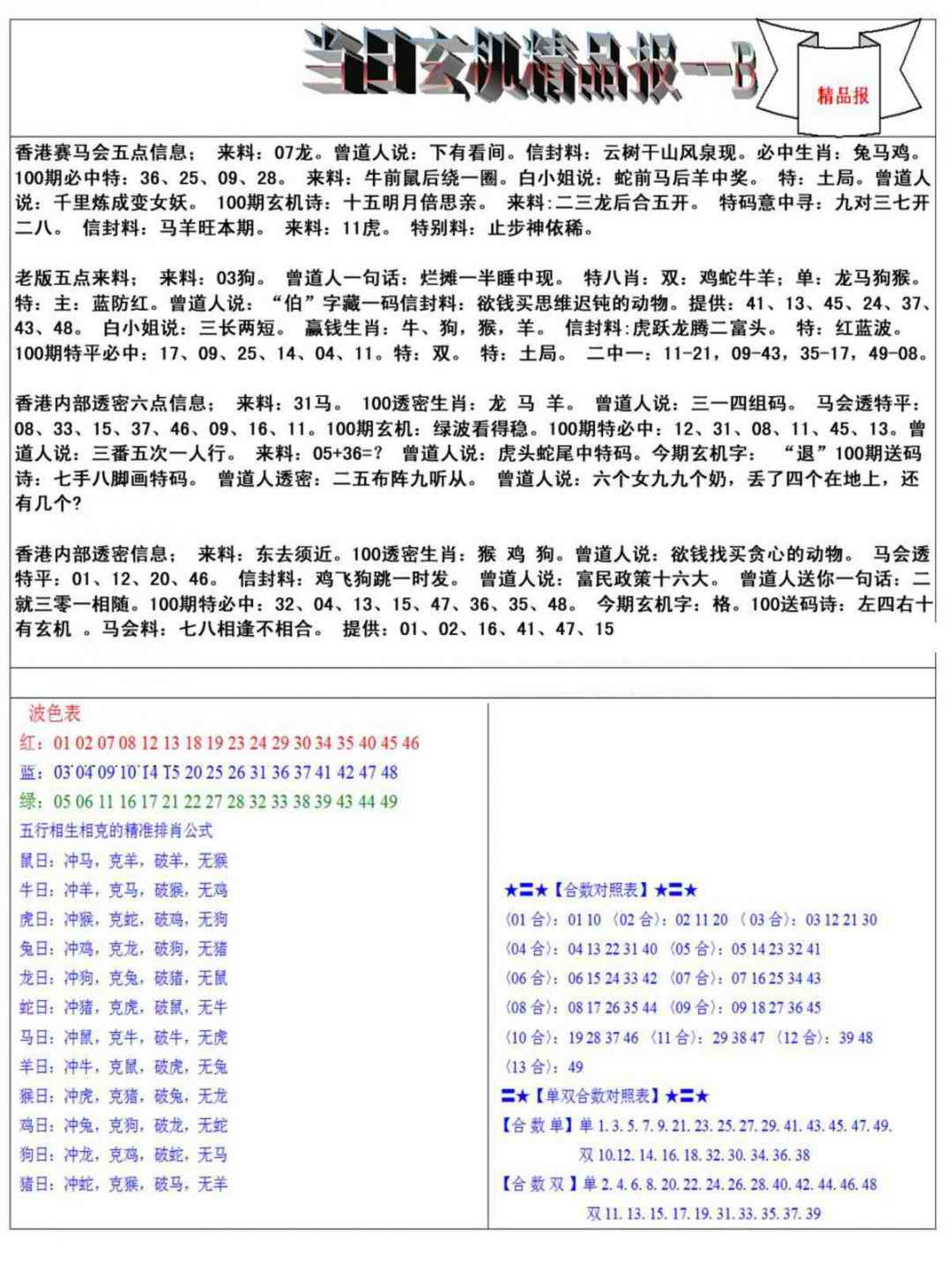 100期当日玄机精品报B[图]