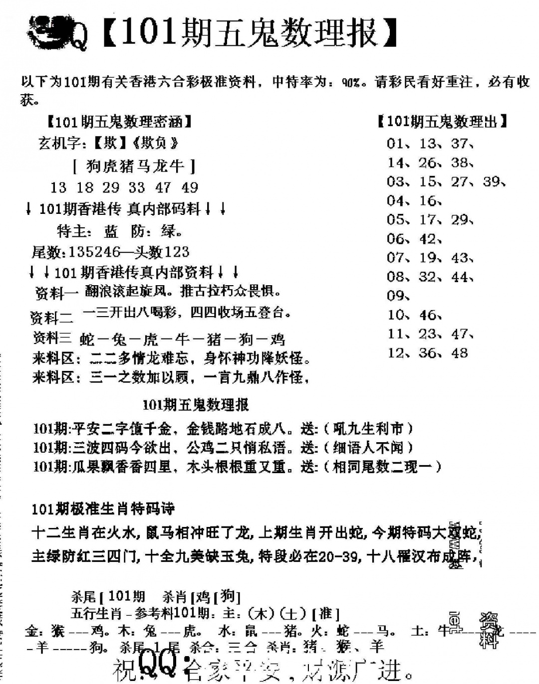 101期五鬼数理报[图]