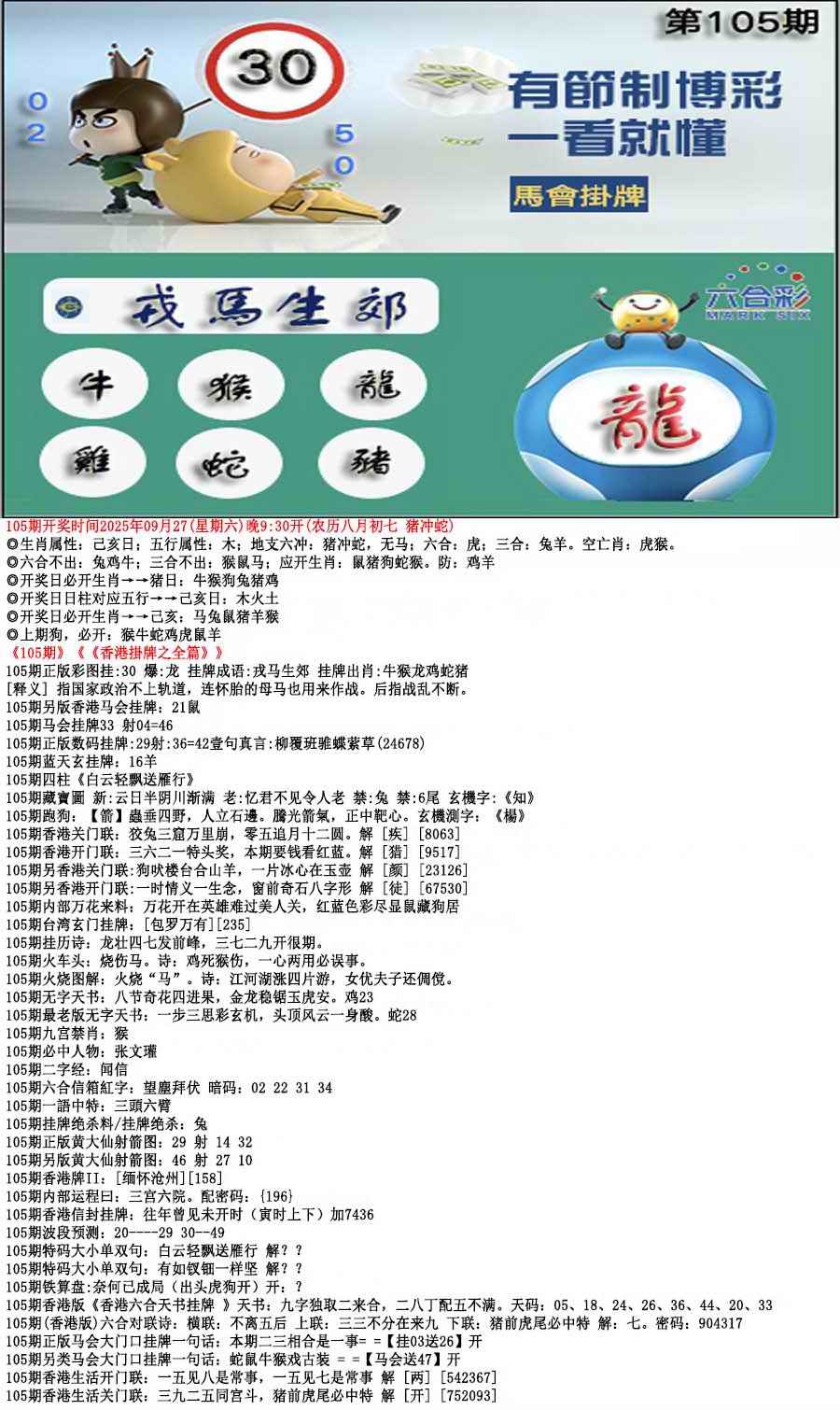 105期马会挂牌[图]