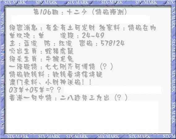 106期十二少(特码预测)[图]