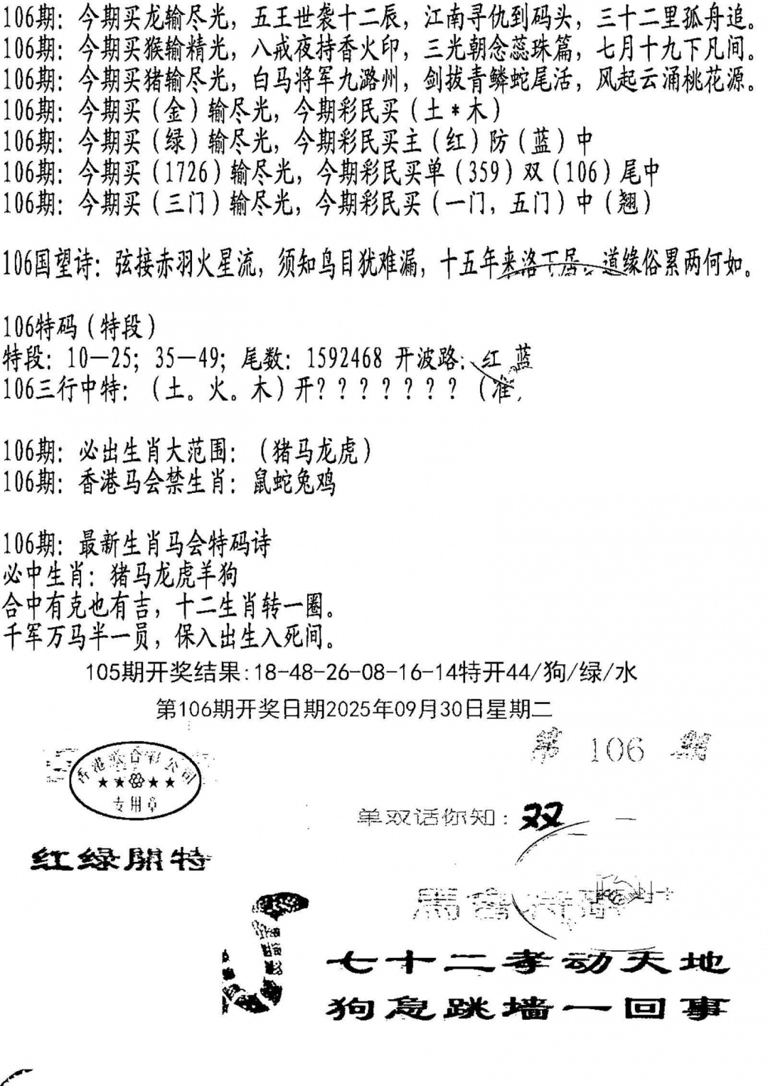 上一篇:106期香港马头报[图]