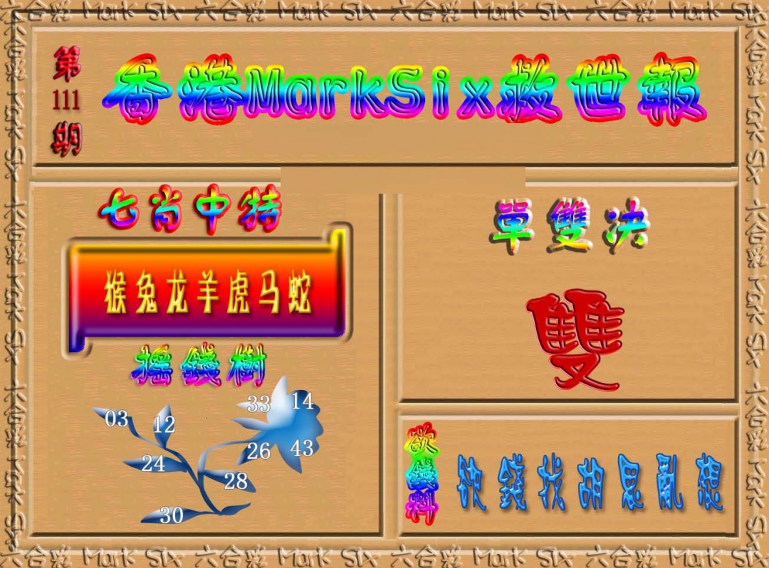111期香港MarkSix救世报[图]