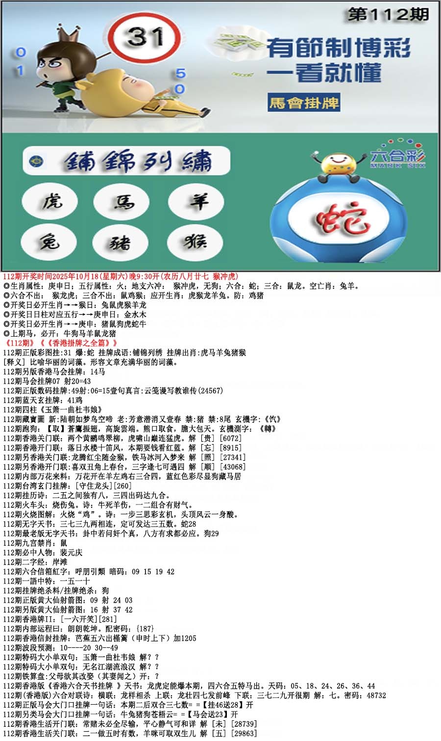 112期马会挂牌[图]