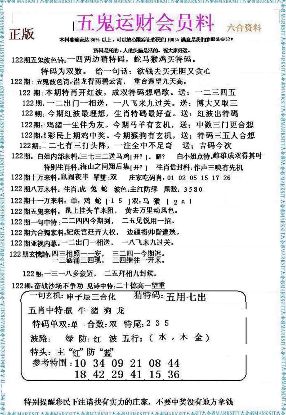 122期五鬼运财会员料[图]